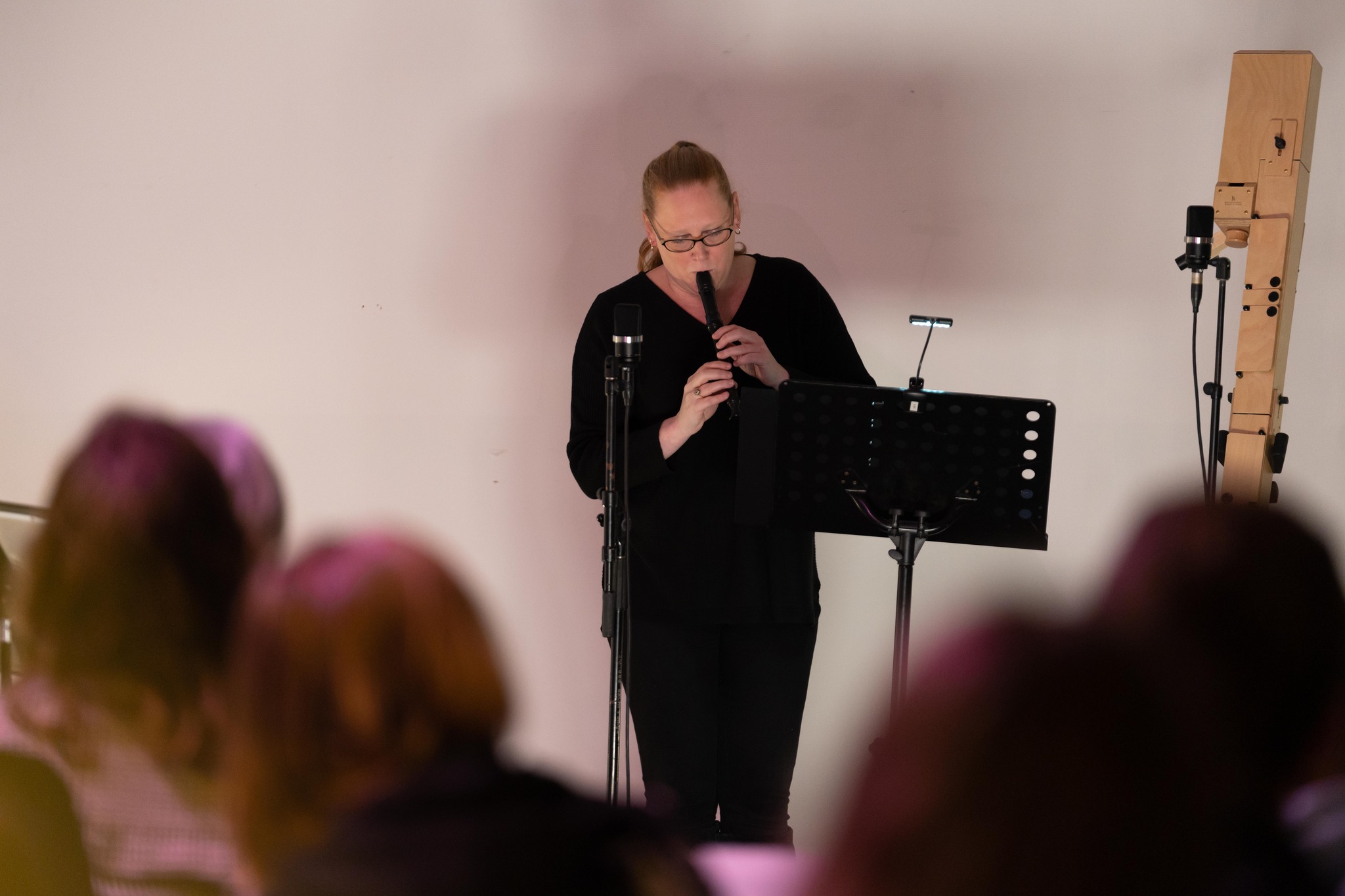 Performer Alana Blackburn took the stage next in performance of Donna Hewitt’s ‘Permafrost’ on solo recorder. The space turned cold. Hewitt had created an icy, sparkling sound art foundation from recordings made prior with Blackburn. It played with extremes over the top – the guts and strength of the contrabass, the airy grace of the sopranino. The vitality of Blackburn as a lone performer became a sign of life amongst Hewitt’s desolate backdrop as the heart of a delicately-crafted, stunning work. Maddy Briggs – Guest reviewer for Classikon Full event review here:https://www.classikon.com/rich-yearning-soundscapes-of-backstages-earthbound/